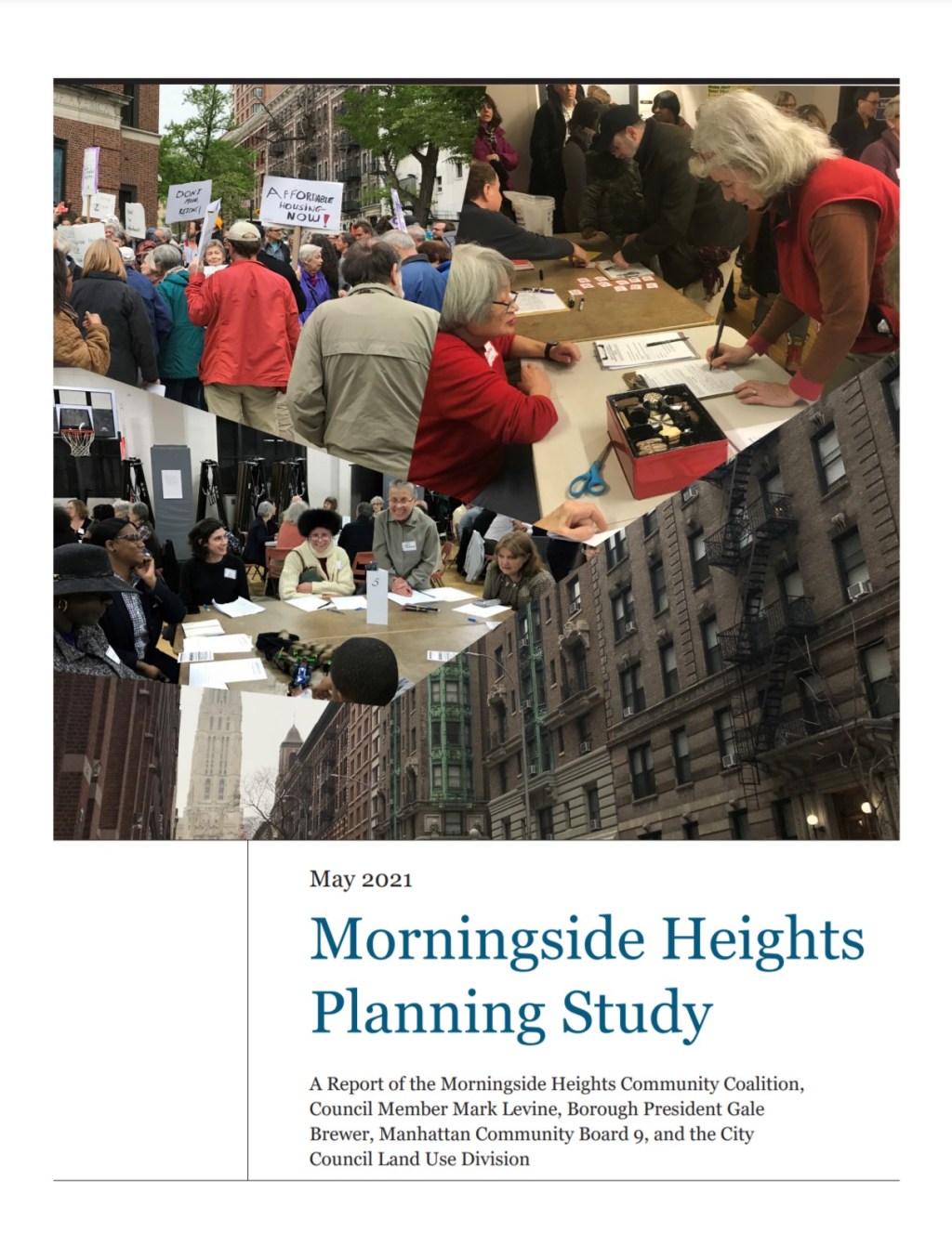 The Morningside Heights Planning Study is the product of a collaboration between the Manhattan Borough President, Speaker Corey Johnson, Council Member Mark Levine, Community Board 9, and the Morningside Heights Community Coalition to address housing needs and preserve the character of Morningside Heights. The years of advocacy by the Morningside Heights Community Coalition, Community Board 9, local elected officials, and residents show the success of ground-up community-based planning. The planning study highlights the need to encourage growth of affordable housing near transit, protect rent-stabilized units, and limit out-of-context development.